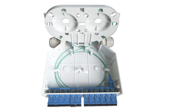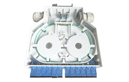 DIN-FB is a plasitc DIN rail mounted fiber optic terminal box. It can be max. 12 fibers splicing and connection.